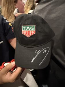 戻った後も3分くらいですが、トークのあとにTAGHeuerのキャップにサインをし、それをファンの方に投げいれるという交流がありました。